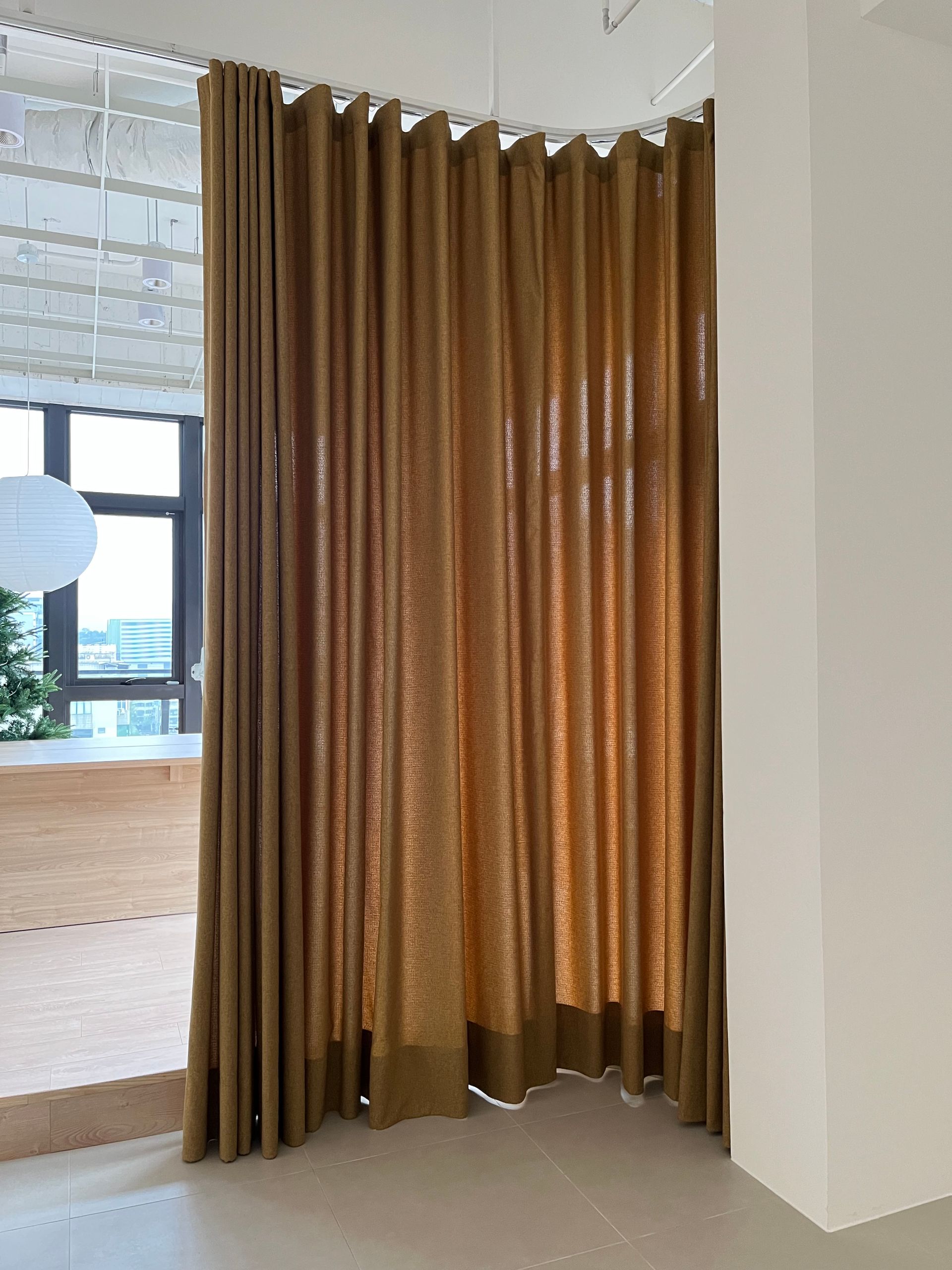 在一布一紗之間的交錯中,光線活潑地穿越進入室內。
